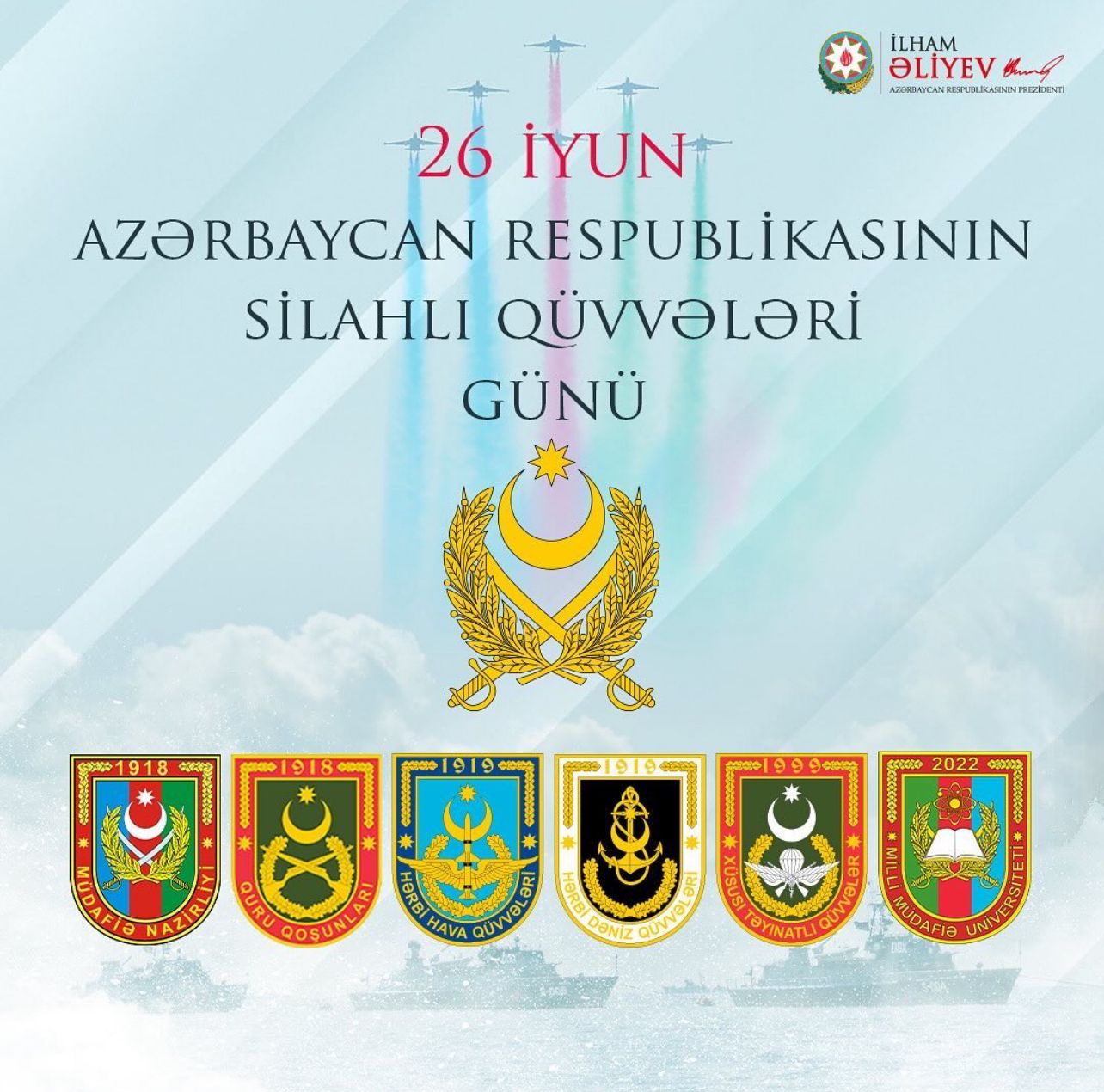 Azərbaycan Respublikasının Prezidenti İlham Əliyev sosial media hesablarında 26 İyun - Silahlı Qüvvələr Günü ilə bağlı paylaşım edib.