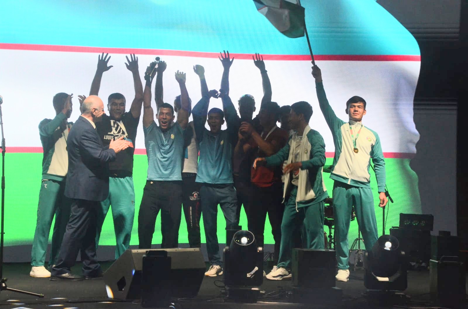 Sonra qızıl medal qazanan idmançılar səhnəyə dəvət olunaraq mərasim iştirakçılarına təqdim olunub.