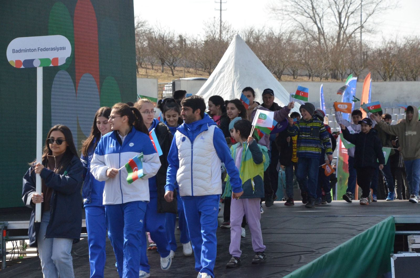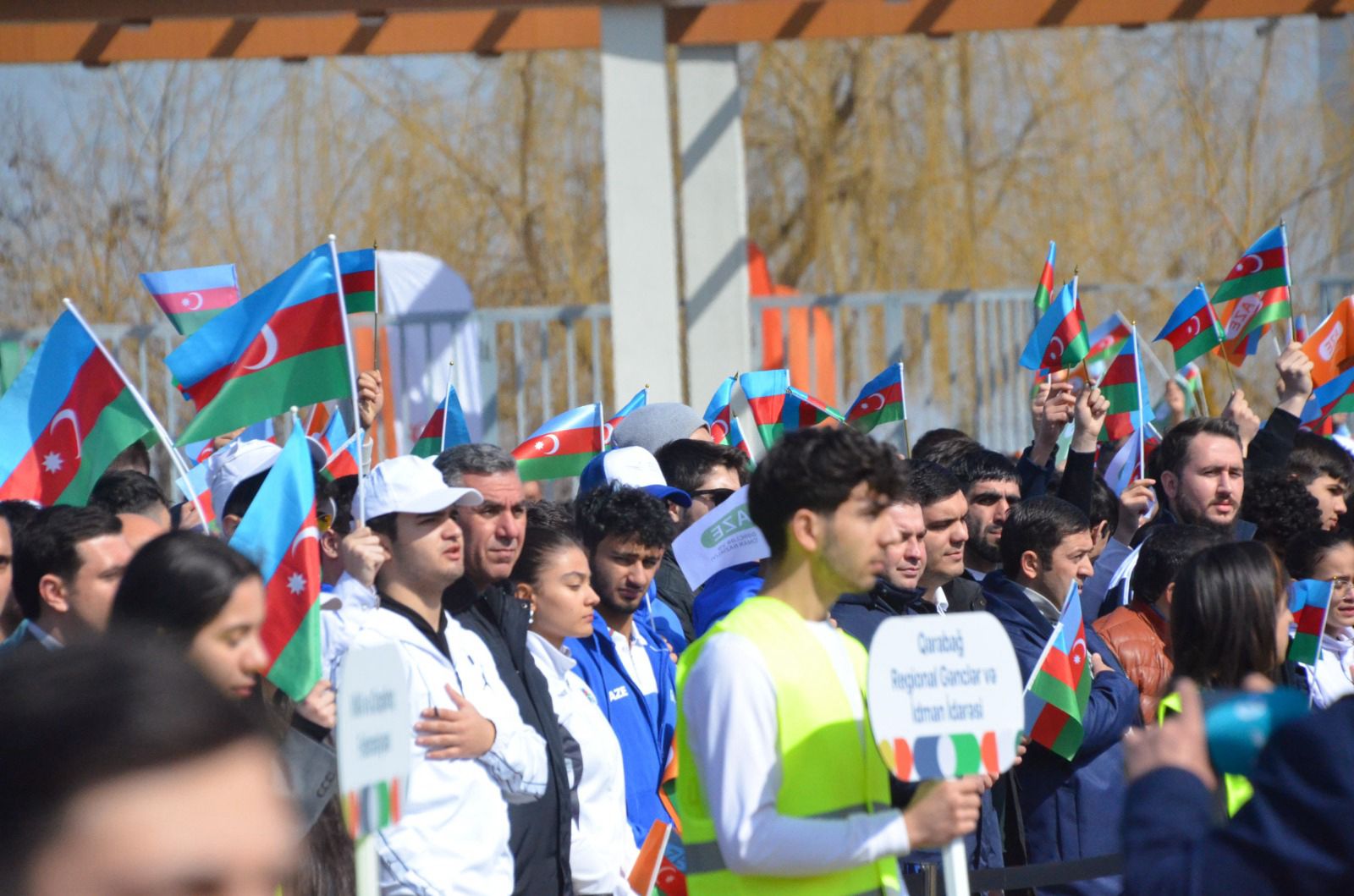 Daha sonra idman Paradı başlayıb. Azərbaycan Respublikası dövlət Himni səsləndirildikdən sonra torpaqlarımızın ərazi bütövlüyü uğrunda canlarından keçən qəhrəman övladlarımız əziz xatirəsi bir dəqiqəlik sükutla yad edilib.