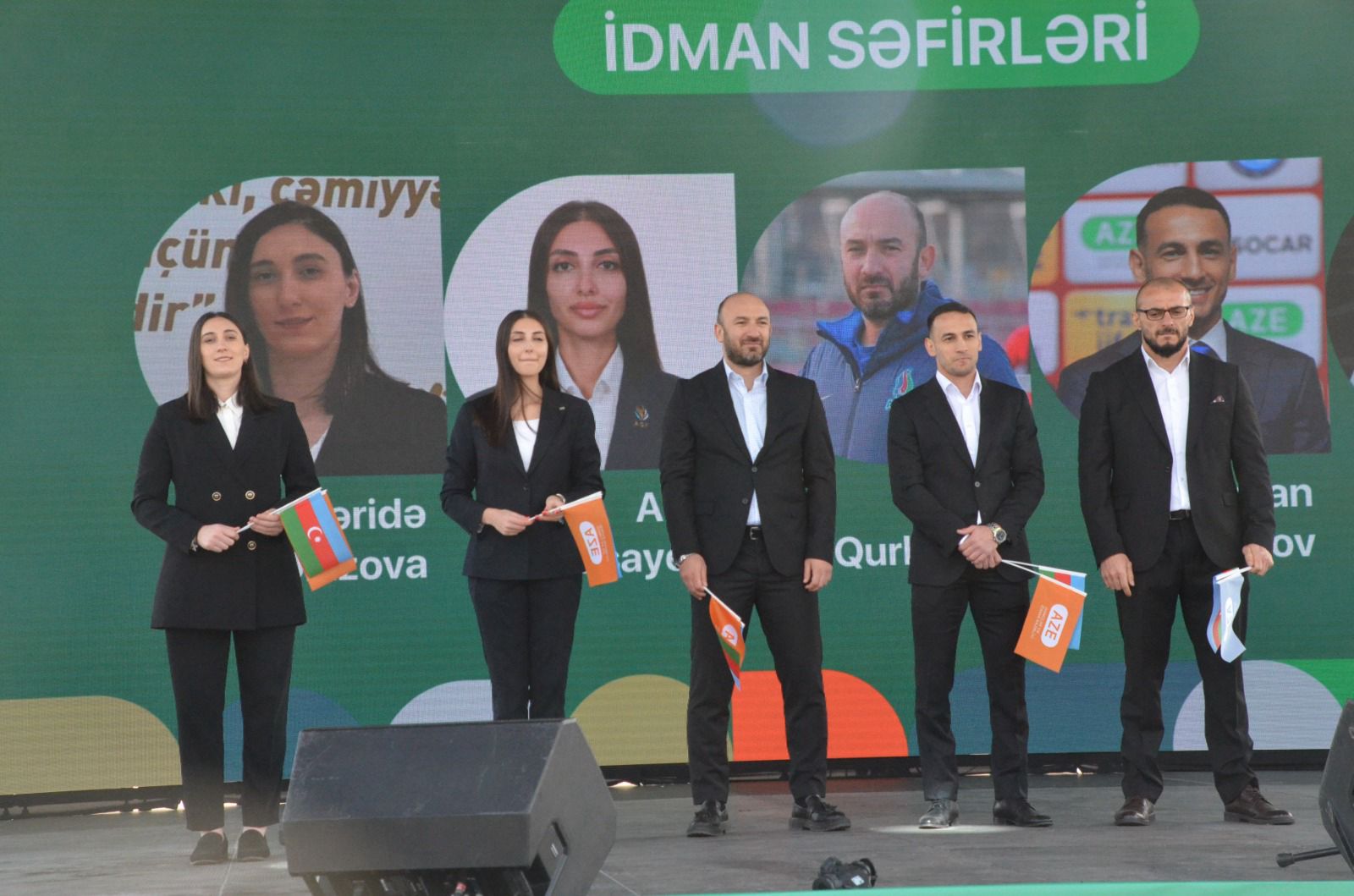 Sonra səhnəyə 2024-cü ilin “İdman səfir”ləri seçilən taekvondoçu Fəridə Əzizova, bədii gimnastika üzrə millinin məşqçisi Aliyə Paşayeva, futbol üzrə Azərbaycan millisinin skautu İlqar Qurbanov, keçmiş cüdoçu Orxan Səfərov və milli idman növləri üzrə məşqçi Xəyyam Orucov parad iştirakçılarına təqdim olunublar.