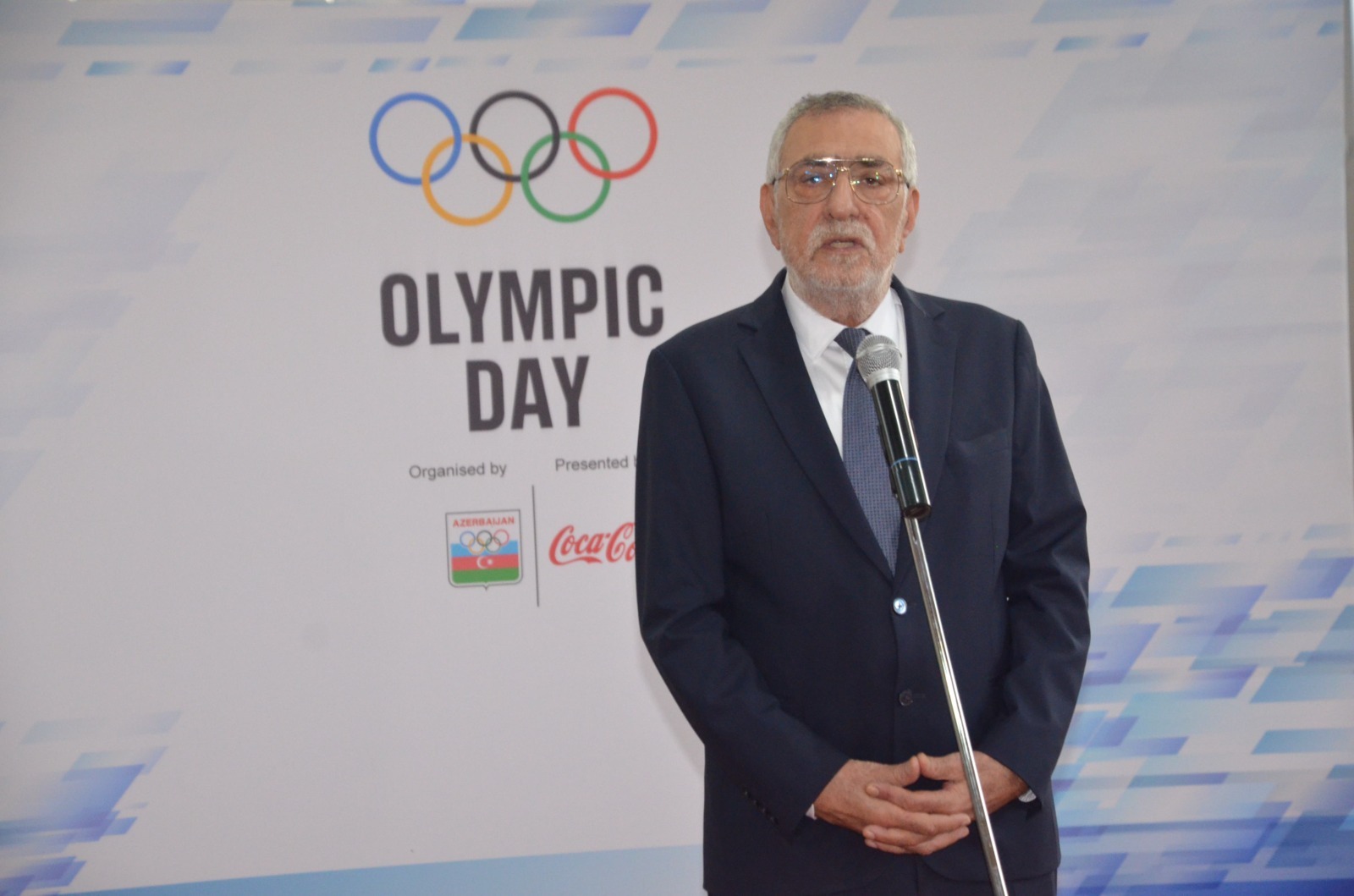 Tədbiri giriş sözü ilə MOK-un vitse-prezidenti Çingiz Hüseynzadə açıb. O, deyib: «Bildiyiniz kimi, bu ilin iyun ayı mühüm idman yarışları ilə zəngin oldu. Avropa Gənclər Olimpiya Festivalı, Avropa Oyunları və MDB Oyunları həmin ərəfədə keçirildi. Bu səbəbdən qrafik çox sıx oldu. Biz də Beynəlxalq Olimpiya Komitəsinin razılığı əsasında «Olimpiya günü» tədbirini bu günə təyin etdik».