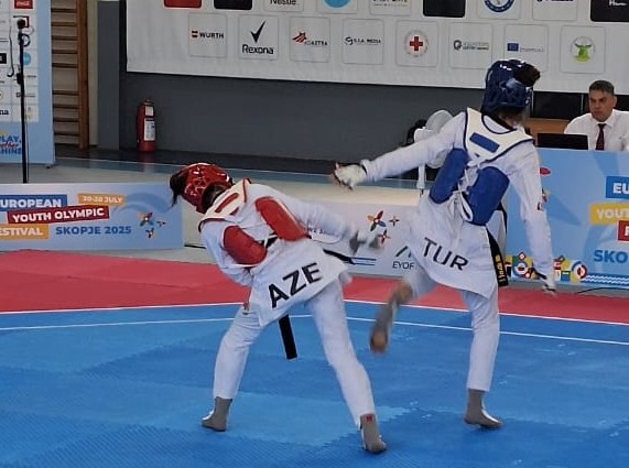 Bu gün Skopye-2025-in taekvondo yarışlarında daha bir idmançımız mübarizəyə başlayıb.