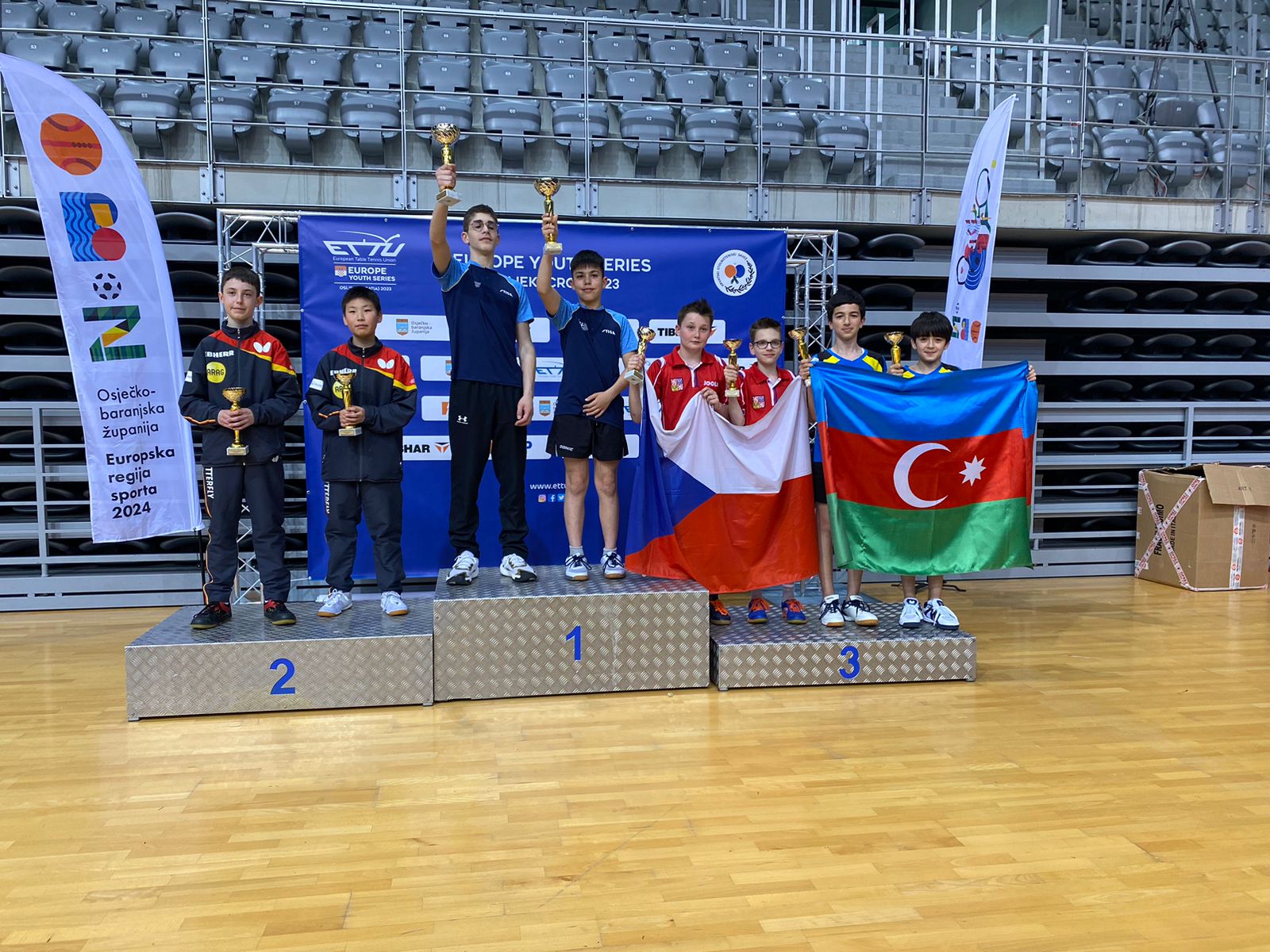 Stolüstü tennisçilərimiz Avropa Stolüstü Tennis İttifaqının “Europe youth series” turnirinin son günündə daha 3 medal qazanıblar. Xorvatiyanın Osiyek şəhərində keçirilən yarışın şəxsi turnirində Xorvatiya, Sloveniya, Serbiya və Yunanıstan idmançılarına qalib gələn U-13 millimizin üzvü Onur Quluzadə yarımfinalda almaniyalı rəqibinə 2-3 hesabı ilə uduzaraq bürünc mükafata layiq görülüb. Yağmur Məmmədli - Xədicə Eylazova, Onur Quluzadə - Tunar Bağırov tandemi isə qoşa yarışlarda 3-cü yeri tutub. Xatıradaq ki, yarışın ilk günlərində mübarizə aparan U-13 seçməmiz komanda turnirində gümüş mükafata sahib çıxmışdı.