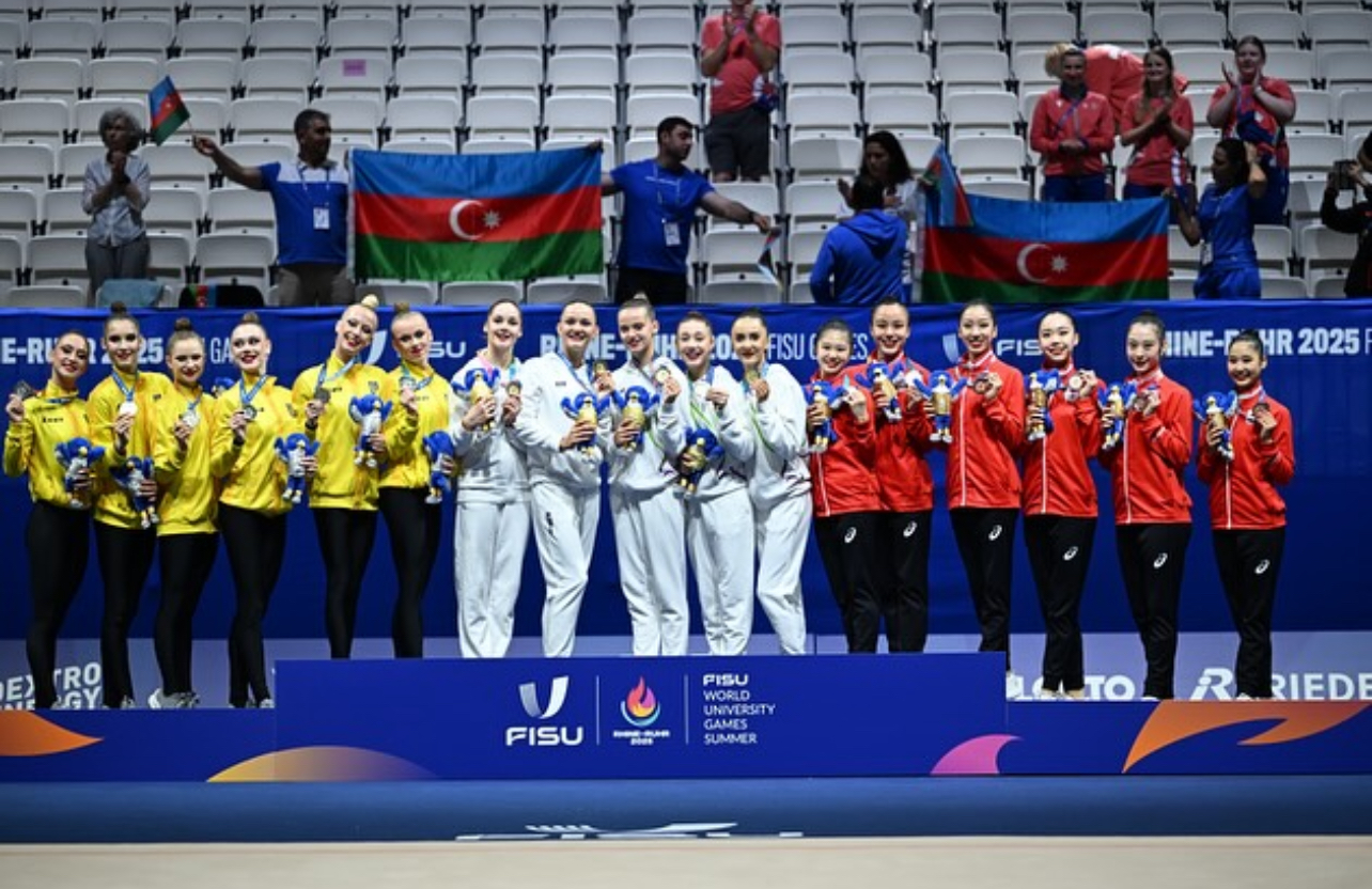 Almaniyanın Reyn-Rur regionunda keçirilən Ümumdünya Yay Universiadasında qızıl medal qazanan Azərbaycanın bədii gimnastika üzrə qrup hərəkətləri komandası mükafatlandırılıb.
