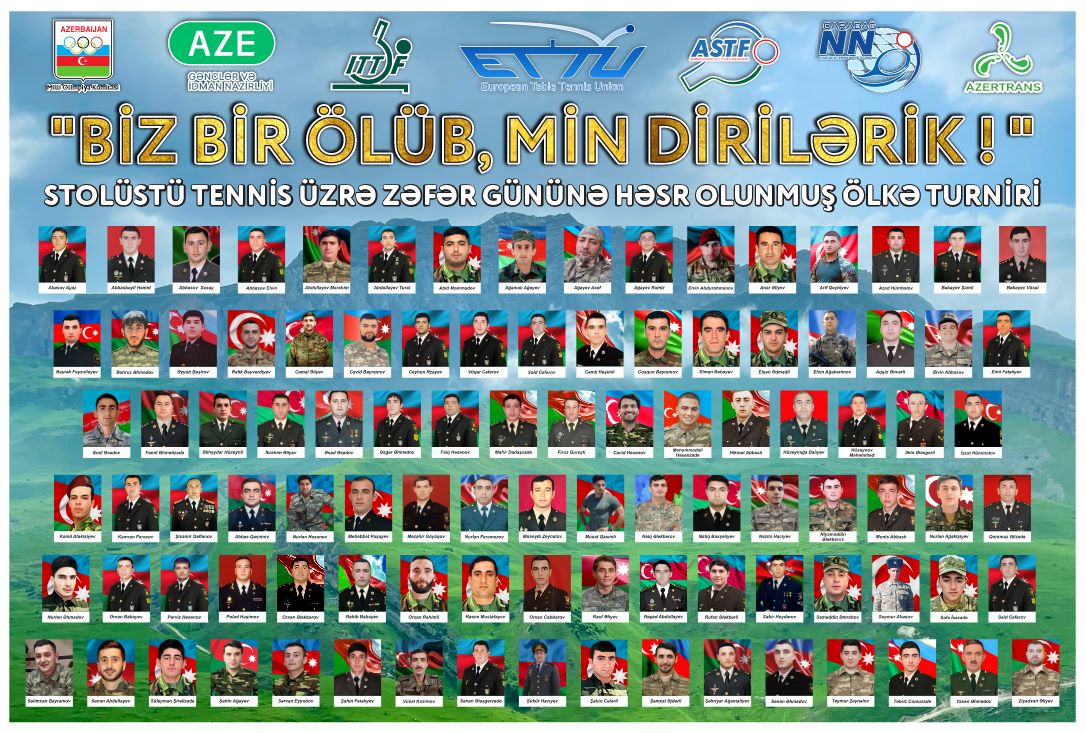 Stolüstü tennis üzrə “Biz bir ölüb, min dirilərik” devizi ilə respublika turniri keçiriləcək. Zəfər gününə həsr olunan yarışda Azərbaycanın müxtəlif bölgələrindən idmançılar qüvvələrini sınayacaqlar. 28-29 oktyabr tarixlərində Sumqayıt şəhərində yerləşən “Qarabağ NN” stolüstü tennis idman klubunda təşkil olunacaq yarış 2012-ci il təvəllüdlü və daha az yaşlı idmançılar arasında keçiriləcək. Turnirin qalibləri Azərbaycan Respublikası Gənclər və İdman Nazirliyi və Azərbaycan Stolüstü Tennis Federasiyasının diplom, medal və qiymətli hədiyyələri ilə mükafatlandırılacaqlar.